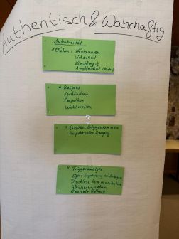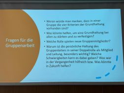Zuerst wurde erarbeitet, welche Fähigkeiten für das Leiten einer Gruppe sehr wichtig sind. Hier wurde auch, anhand von vielfältigen Beispielen, aus den Gruppen berichtet.