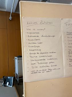 Bevor es dann zum letzten gemeinsamen Mittagessen ging, wurde der Gruppenraum aufgeräumt und man setzte sich zur Schlussrunde.