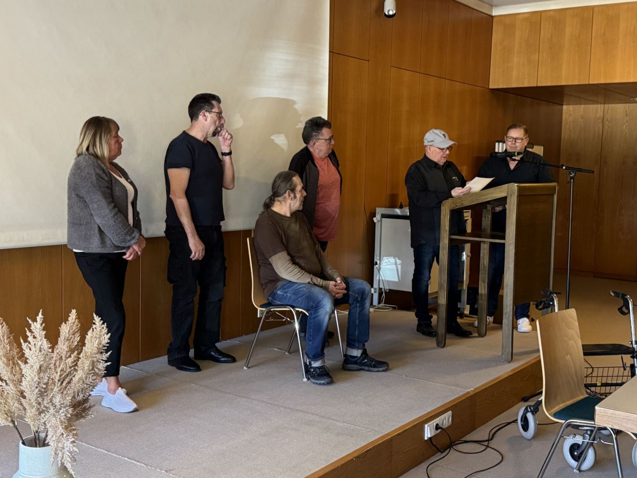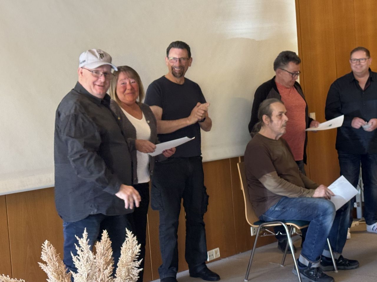 Nach dem Mittagessen ging es mit den Ehrungen für langjährige Mitgliedschaft im Kreuzbund weiter. Für 10jährige Treue wurden 13 und für 25jährige Treue 2 Weggefährtinnen/Weggefährten ausgezeichnet. Die zu Ehrenden erhielten jeweils eine Urkunde und eine Kreuzbundnadel in Silber bzw. in Gold. Um sich an die Zeit vor 25 Jahren noch zu erinnern, zeigte Alex Cunow einen kurzen Film über die wichtigsten Ereignisse des Jahres 1994.