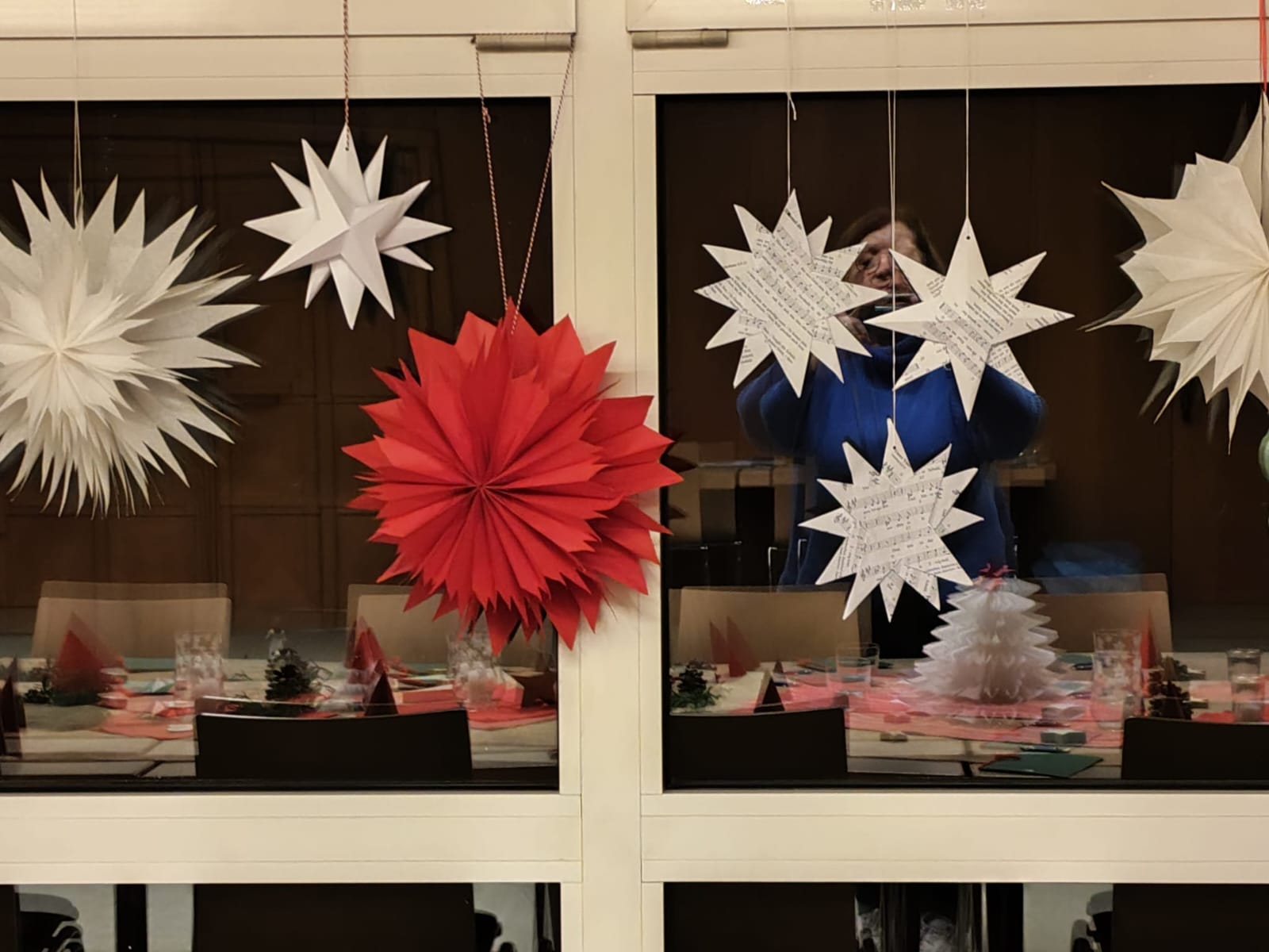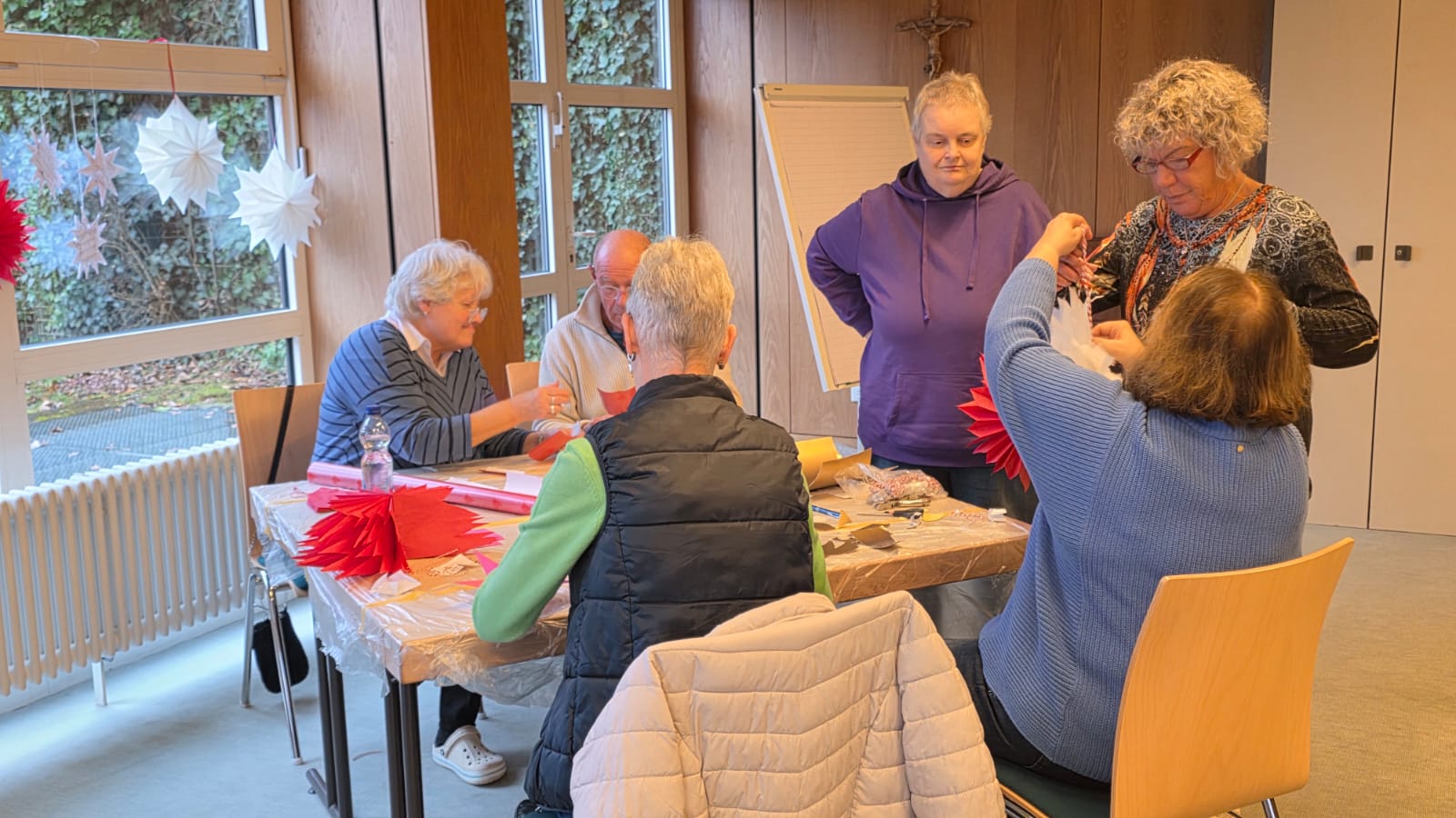 Dieser Samstag ist zwar immer mit einem Bastelangebot verbunden. Dieses Mal haben wir mit verschiedenen Papieren Sterne und Engel in Variationen „kreiert“. Im Vordergrund stand gerade dieses Jahr aber das persönliche Gespräch, der Austausch von Erlebtem und noch zu Verarbeitenden. Jedoch war auch in diesem Jahr die Kreativität der Gruppe zu loben.