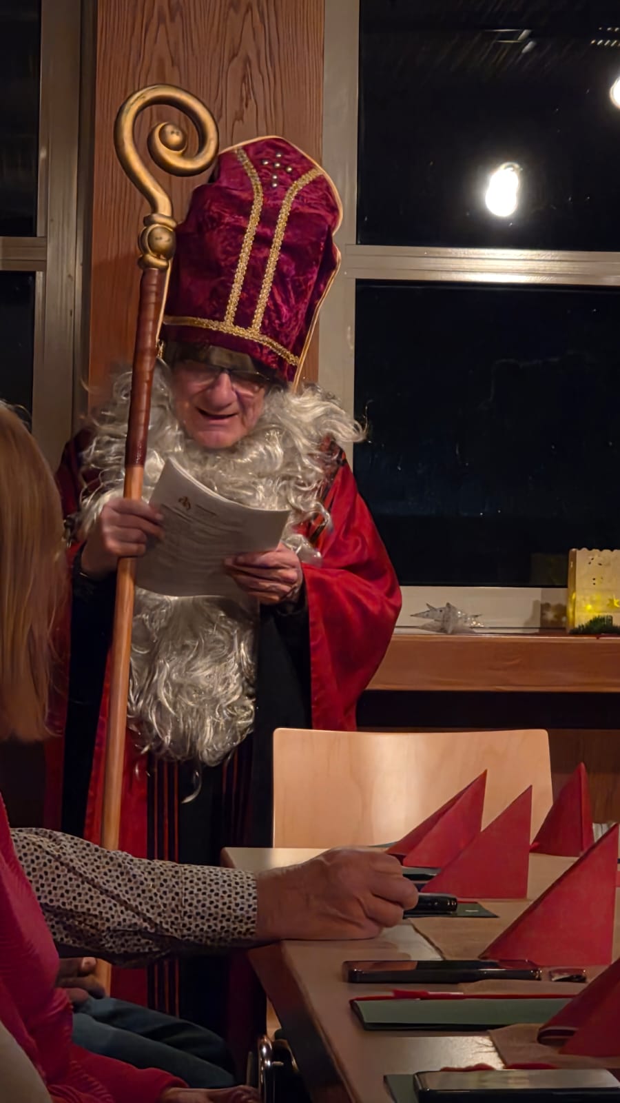 Die folgende Ansprache handelte von der Liebe Gottes zu den Menschen, die Liebe untereinander und der Nächstenliebe, diese gilt auch und gerade in unserem Ehrenamt, aber auch von der Dankbarkeit, deren wir uns immer wieder bewusst werden sollen. In seinem festlichen Gewand mit Bischofsstab verteilte er nach dieser Rede seine Nikolausgaben an die Weggefährtinnen und Weggefährten. In diesem Jahr, gab es, außer dem Schokoladen-Nikolaus, eine rote Laterne. Ich wünsche mir, dass sie uns allen im neuen Jahr an unsere Verbundenheit erinnert, sie soll ein „Licht“ sein, als Nordsee-affiner Mensch sage ich auch gerne ein „Leuchtturm“.